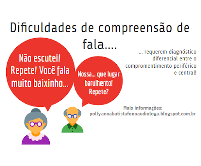 Quem nunca ouviu as queixas: “você fala muito baixinho…”, “nossa… aqui tá muito barulhento!”, “não estou te escutando… repete!”. As principais queixas referidas pelos idosos diz respeito à dificuldade de compreensão de fala, principalmente em ambientes ruidosos. Algo que gostaria muito de comentar com este tema é: “Os sintomas acima exemplificados NÃO PODEM SER EXPLICADOS APENAS PELA PRESENÇA DE UM PERDA AUDITIVA PERIFÉRICA!!!”. Pesquisas recentes sugerem que dificuldades de percepção de fala podem ser também devido a um declínio no processamento auditivo temporal que está relacionado com a idade. Além disso, outros fatores associados ao envelhecimento como a atenção, memória, competência linguística e escolaridade, tem participação determinante no reconhecimento de fala.