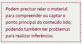 • é comum evitar atividades que exijam leitura ou matemática (mesmo estas sendo de lazer)