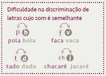 • dificuldade em escrever e reconhecer as letras do próprio nome